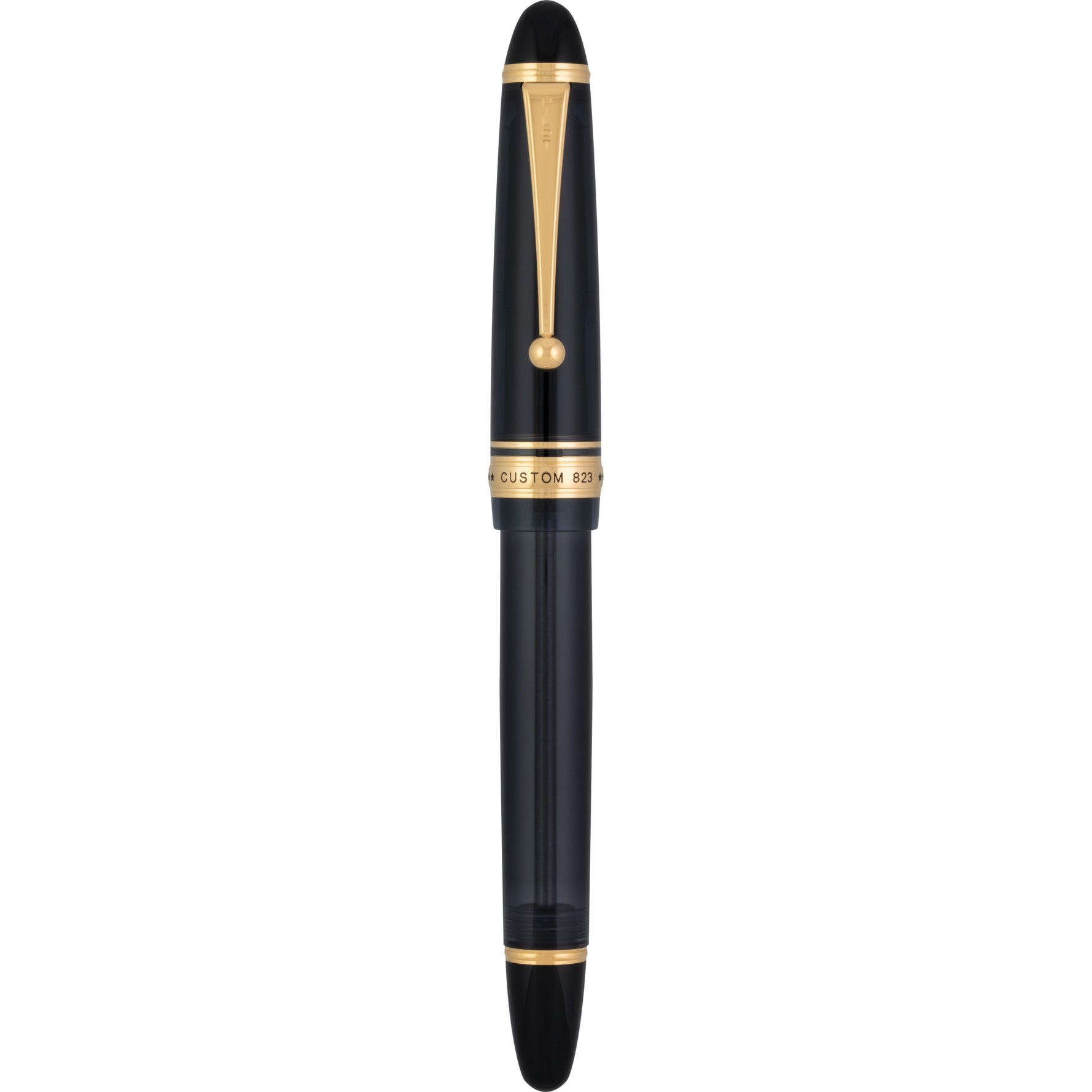 The Custom 823 stands as Pilot's ultimate demonstrator-style fountain pen, offering the largest ink reservoir in their collection. Its smoky amber barrel, complemented by elegant gold accents, exudes refined sophistication. Designed for lasting use, the pen features a unique vacuum plunger filling system, ensuring an extended, smooth writing experience with Pilot's bottled ink.