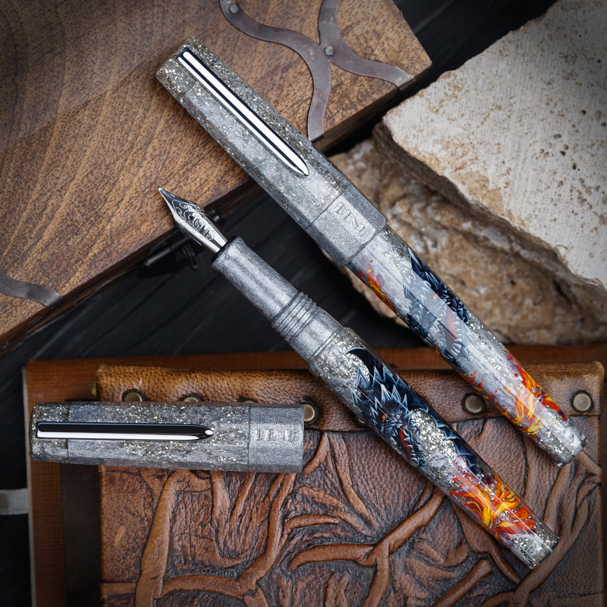 Born from the obsidian depths of moonless nights, Dubhánach commands the mysteries of the unknown. His fiery red and orange accents symbolize destruction, transformation, and the whispers of forgotten secrets. Only the boldest writers can harness his dark power.