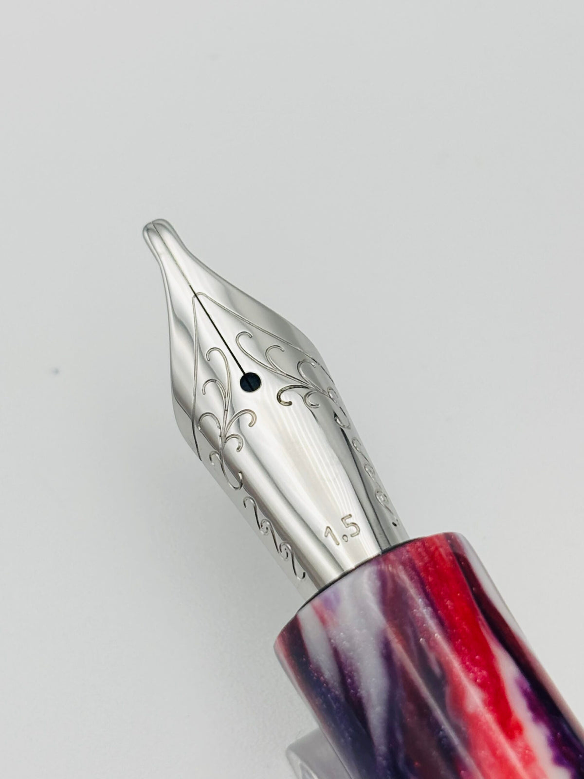 Custom Pen Red White Purple - 1.5 Stub Steel Nib