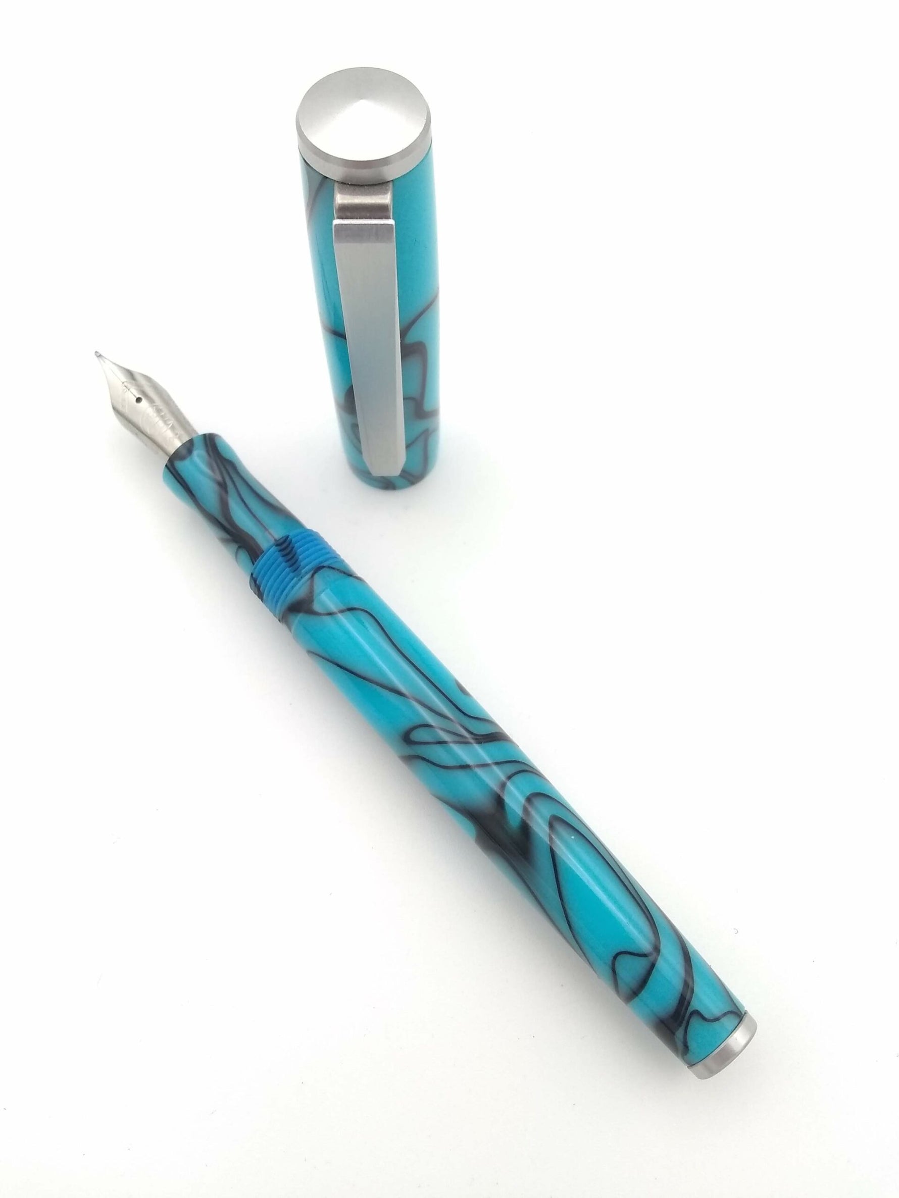 Karas Kustoms Decograph 1801 Teal & Black Swirl - Fine Steel Nib