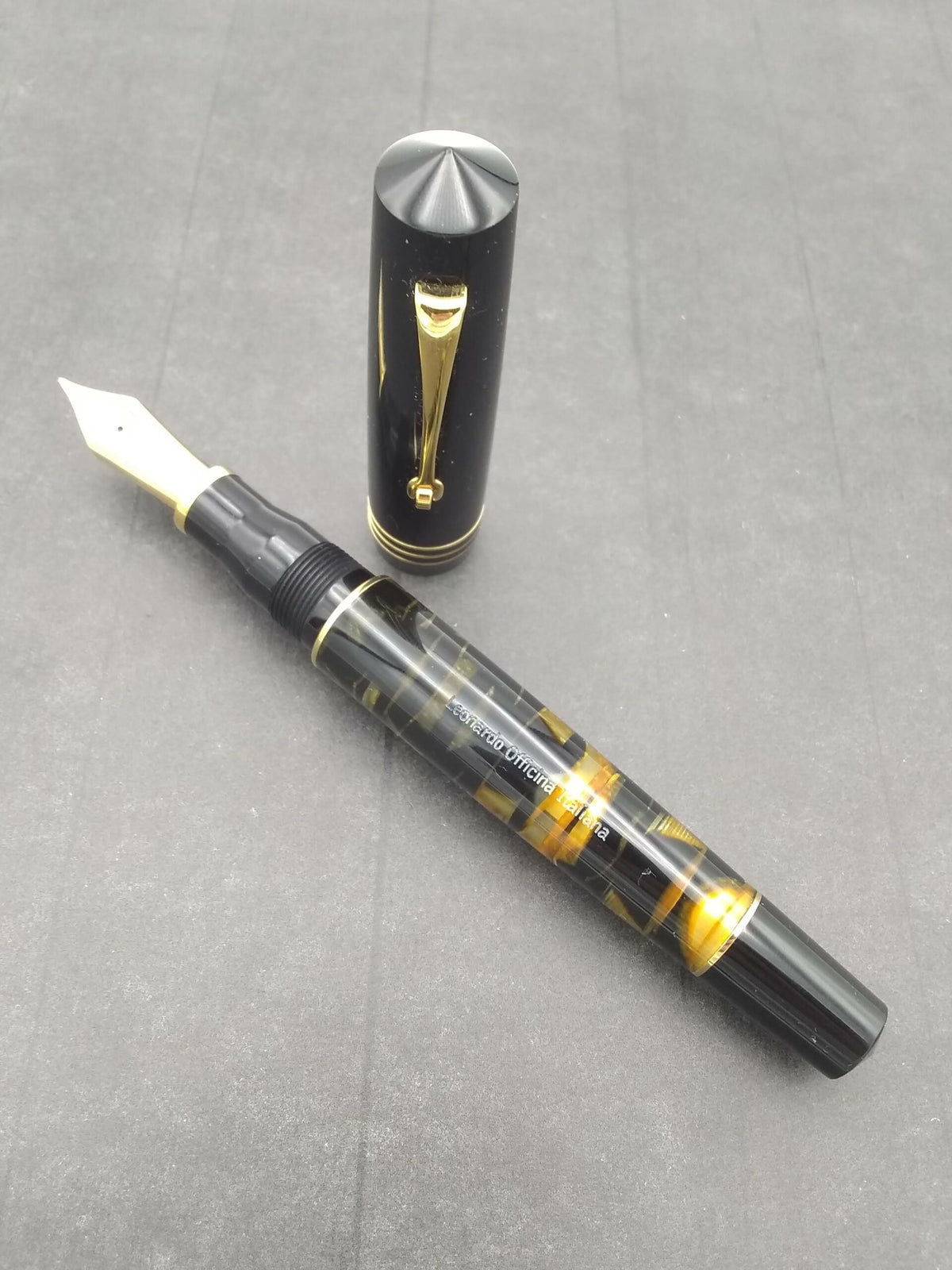 Leonardo MZG Black Lucens Celluloid - #8 14k Medium Nib