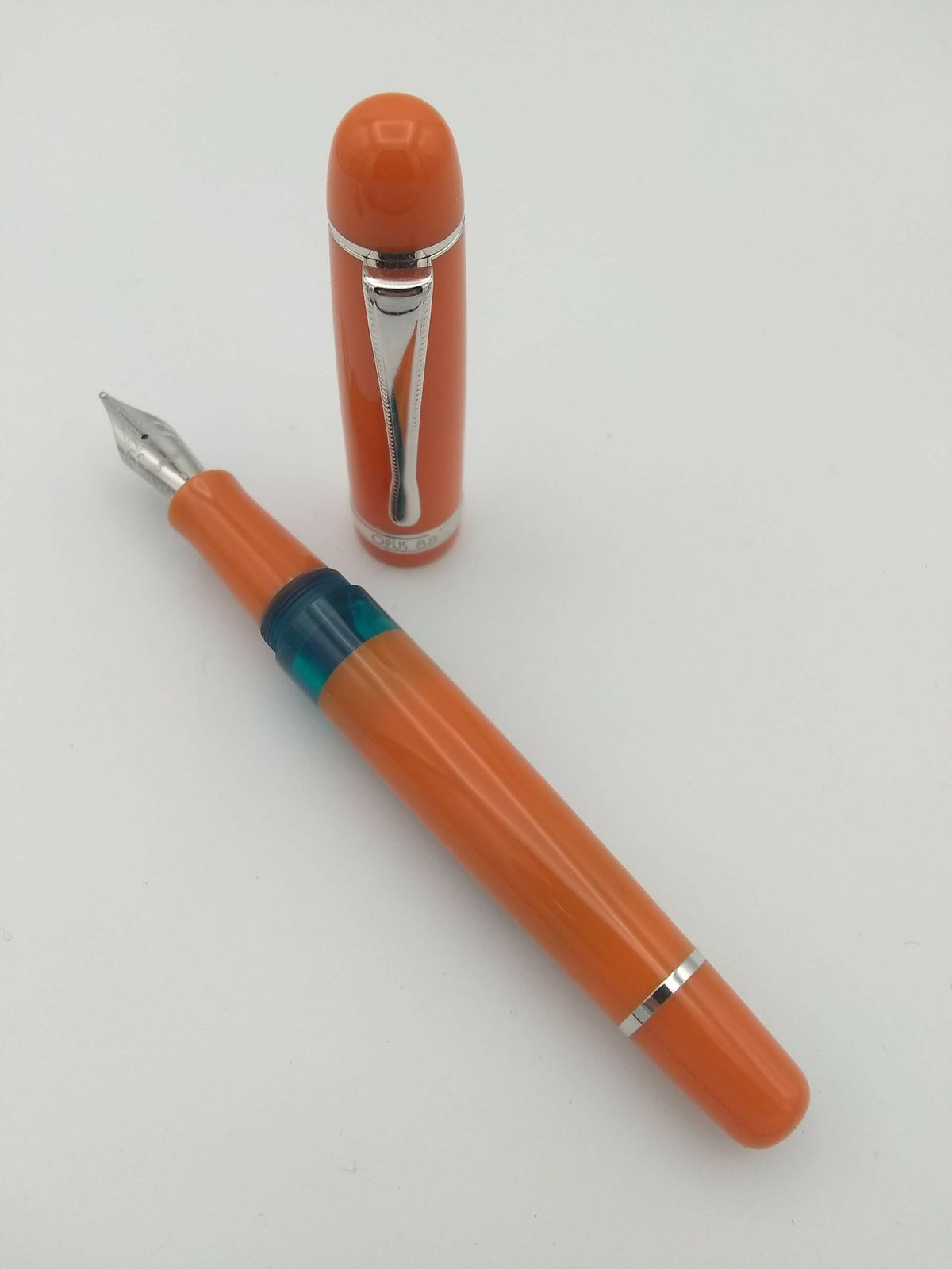 Opus 88 Jazz Orange with Blue Ink Window - Broad Steel Nib